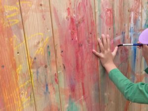 保育園2階、テラスの一角にはアトリエコーナーがあります。
