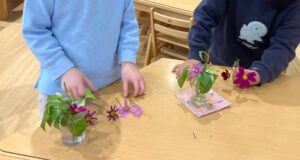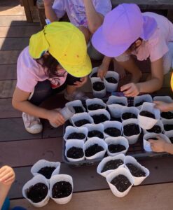 水やりなどの世話を通じて「植物も生きている」という実感と優しくいたわる心を育て、発芽から枯れるまでのサイクルの関節や土の感触・葉や花の香り、色や形など五感を使って自然への好奇心・感性の育成、生命の尊さを学ぶ”花育”